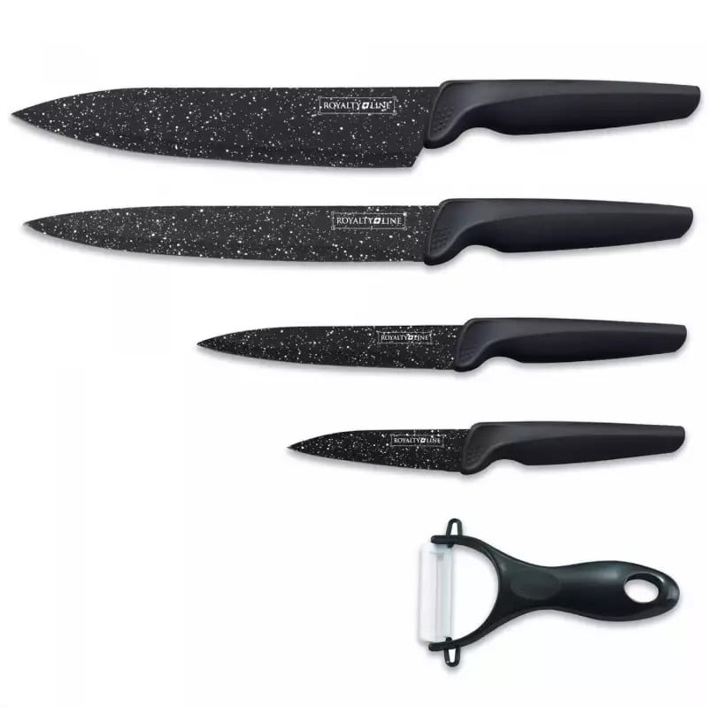 Setul de 5 piese Royalty Line RL-MB4, care include 4 cuțite acoperite cu marmură și o racletă ceramică, este un must-have pentru orice bucătărie datorită performanței superioare, durabilității și designului său elegant. Indiferent dacă sunteți bucătar profesionist sau bucătar acasă, acest set vă va acoperi toate nevoile de gătit.