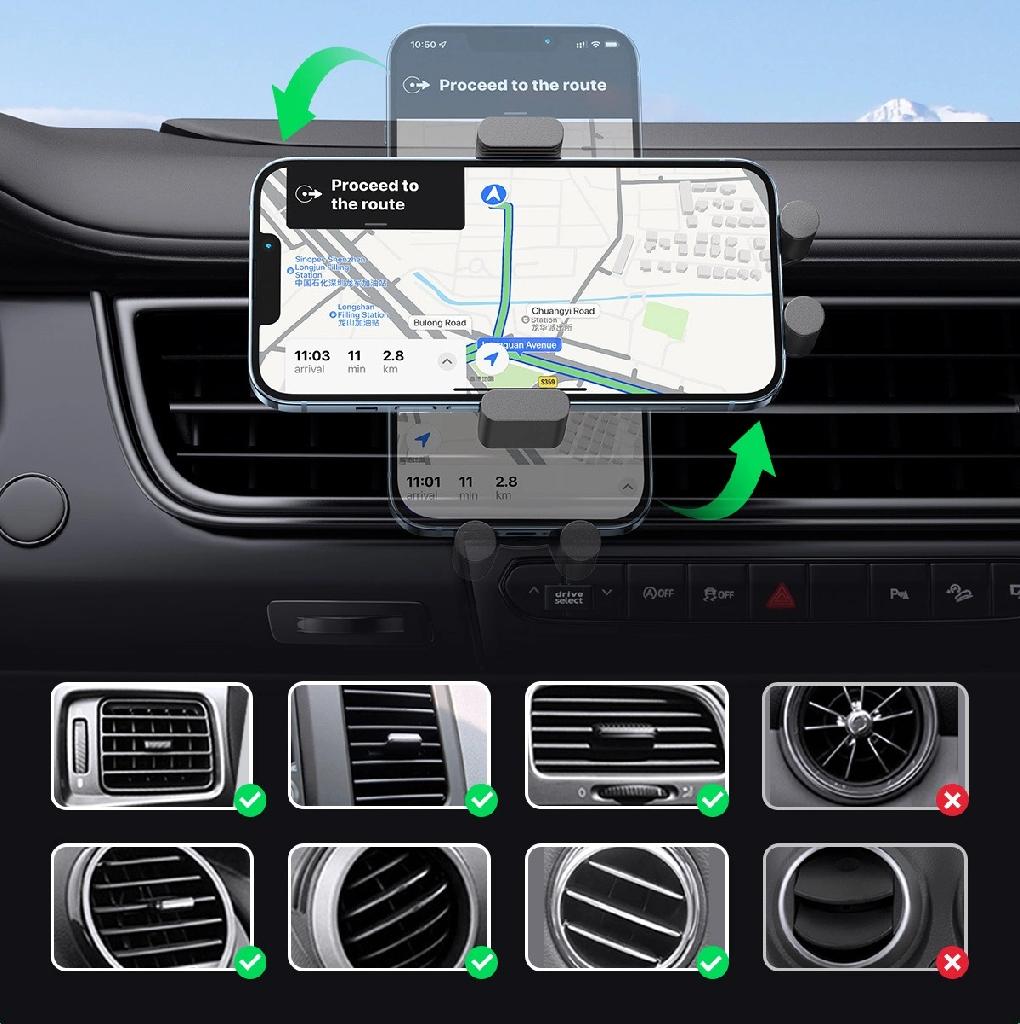 Montează-l pe grila de ventilație și bucură-te de confortul utilizării. Încărcătorul poate alimenta mai multe modele de smartphone-uri cu diagonale cuprinse între 4.7 și 6.7 inch, atâta timp cât acestea sunt compatibile cu standardul Qi.