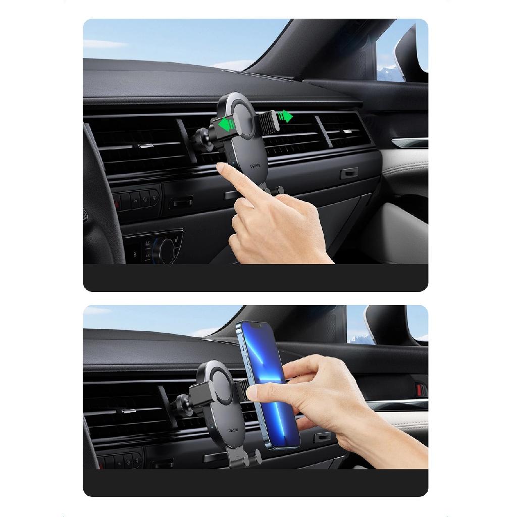 Încărcător auto wireless Ugreen Qi 15W - suport pentru telefon pe grila de ventilație - negru (CD256)