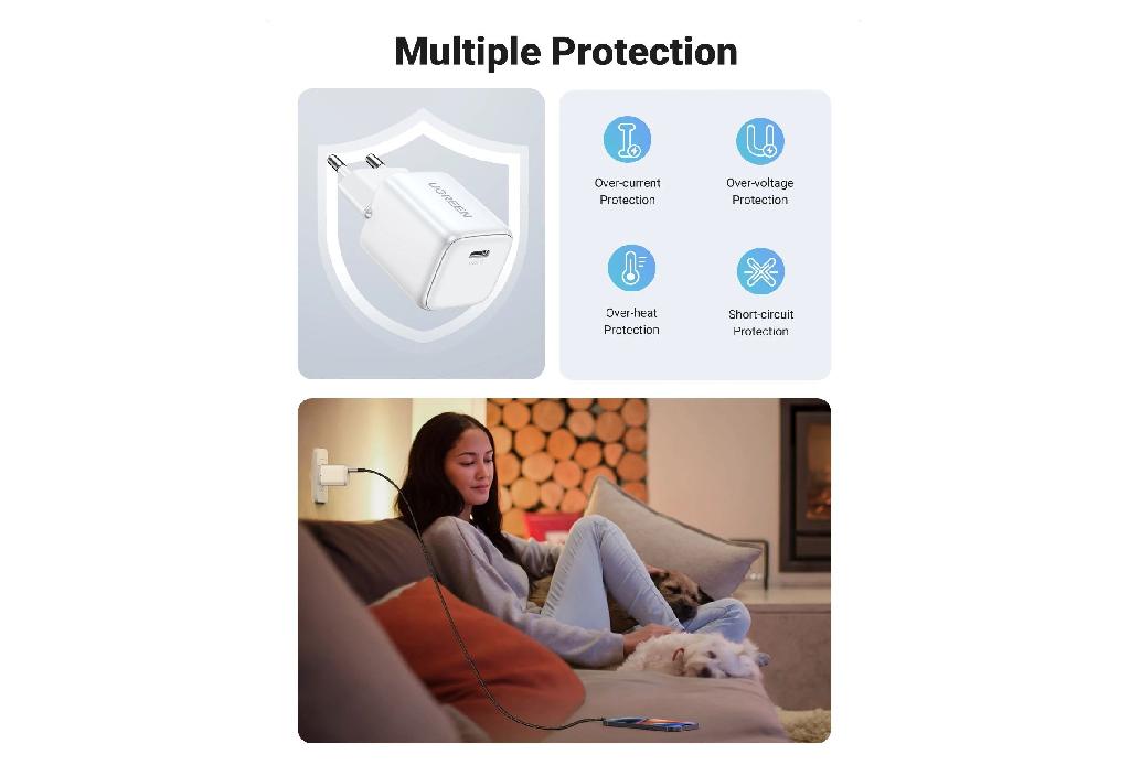 Bucurati-va de incarcare mai rapida pentru dispozitivele dvs. Incarcatorul UGREEN CD319 ofera o putere de pana la 30W si se remarca prin compatibilitatea sa larga. De asemenea, garanteaza o utilizare in siguranta. In plus, datorita utilizarii tehnologiei GaN, a fost posibila cresterea semnificativa a performantei produsului, reducandu-i in acelasi timp dimensiunea - astfel incat sa il puteti avea intotdeauna la indemana.