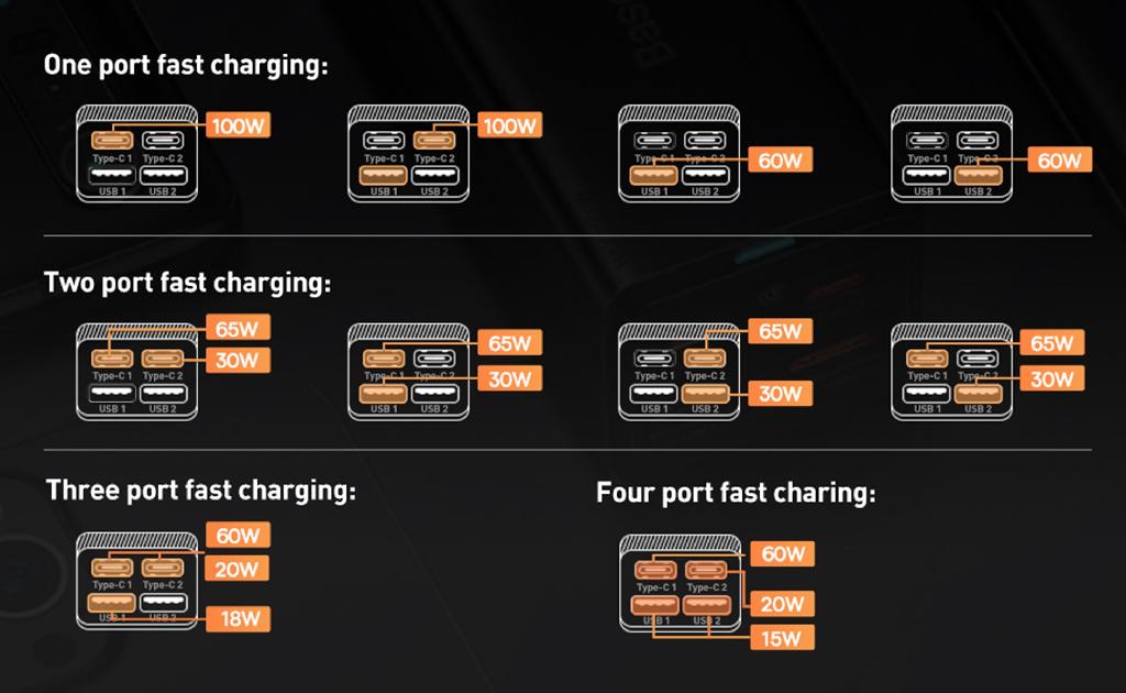 ⚡ Putere totală 100W – perfect pentru laptopuri, telefoane, tablete