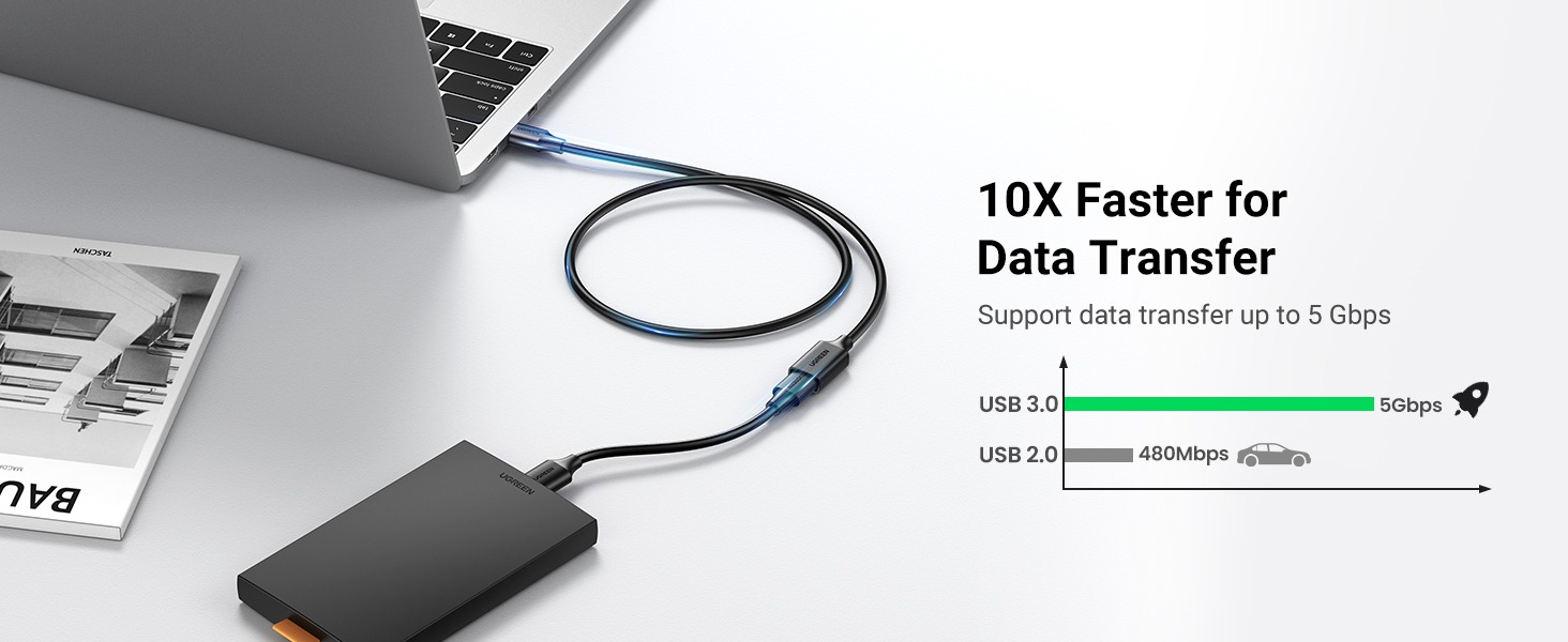 ⚡ Transfer 5 Gbps — viteze USB 3.0, de 10× mai rapide decât USB 2.0.