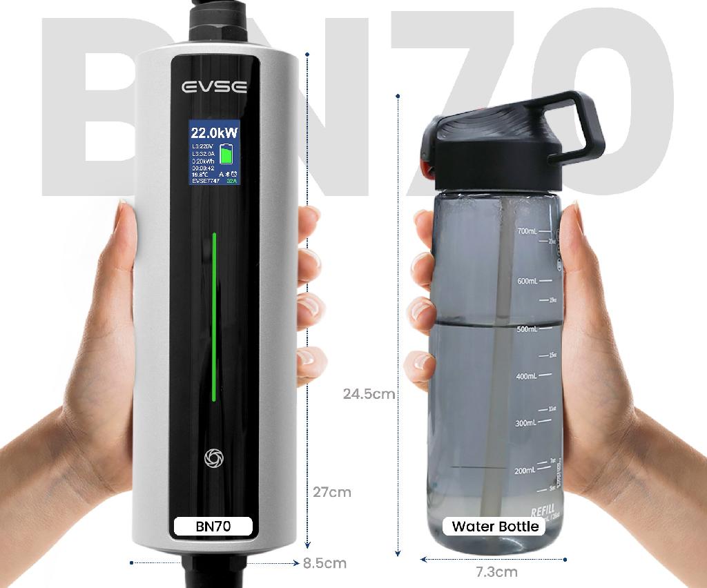 Încărcător portabil EV BESEN BN70 este dispozitiv de încărcare inteligent de înaltă performanță concepute pentru utilizarea acasă, la locul de muncă și în călătorii. Dispunând de un intuitiv Ecran LCD, multiple protectii de siguranta, și compatibilitate cu încărcare monofazată (7.2 kW max) și trifazată (22 kW max)., BN70 oferă eficient si de incredere Încărcare EV oriunde ai merge.