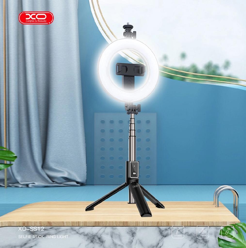 Selfie stick, trepied, suport de telefon cu lampa inelara LED XO SS12