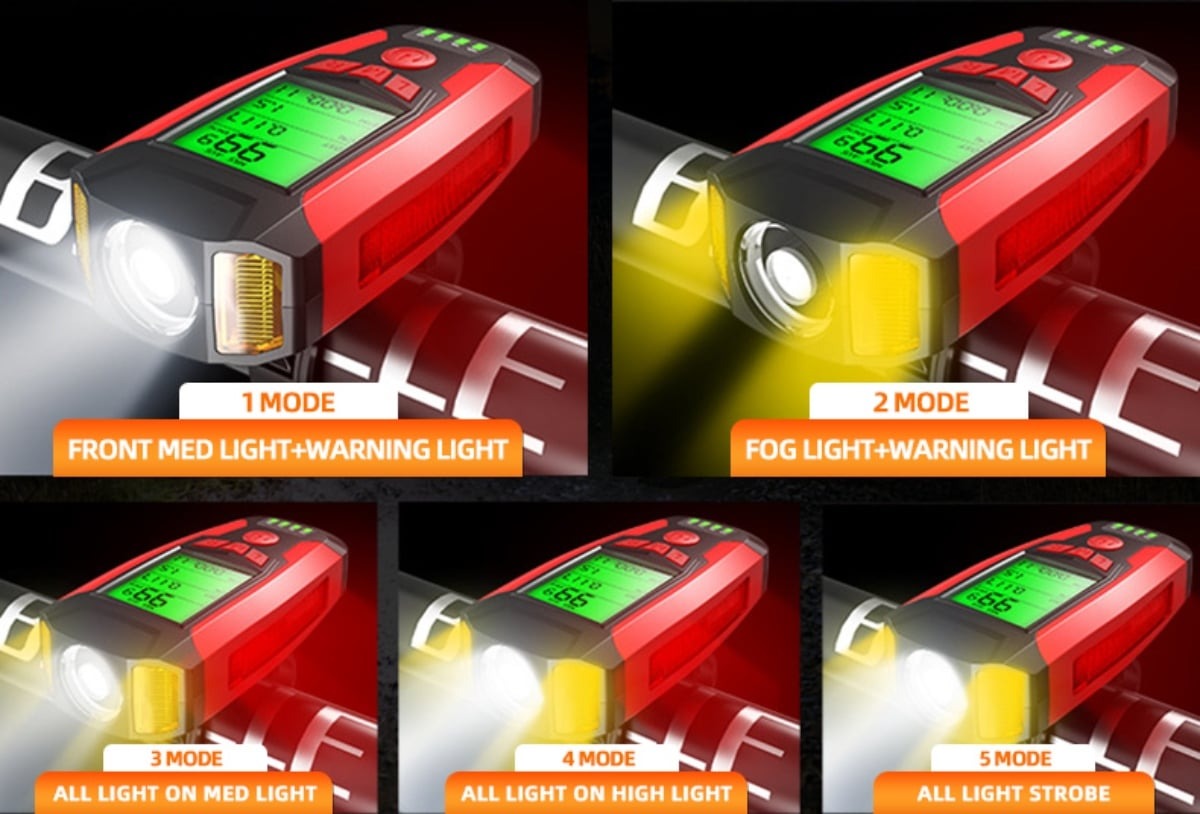 🚴♂️ Lanternă bicicletă 4-în-1 cu afișaj multifuncțional și claxon SUPERFIRE BM01 – Siguranță și control la fiecare pedalare