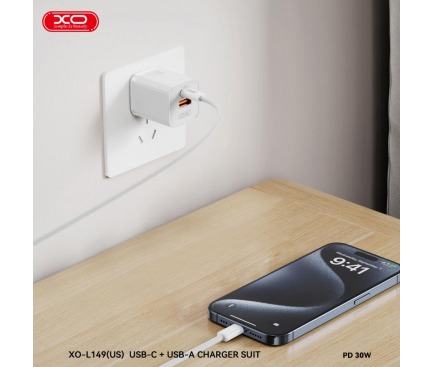 Incarcator retea, GaN, 30W, QC, PD, 1xTypeC si 1xUSB-A XO L149