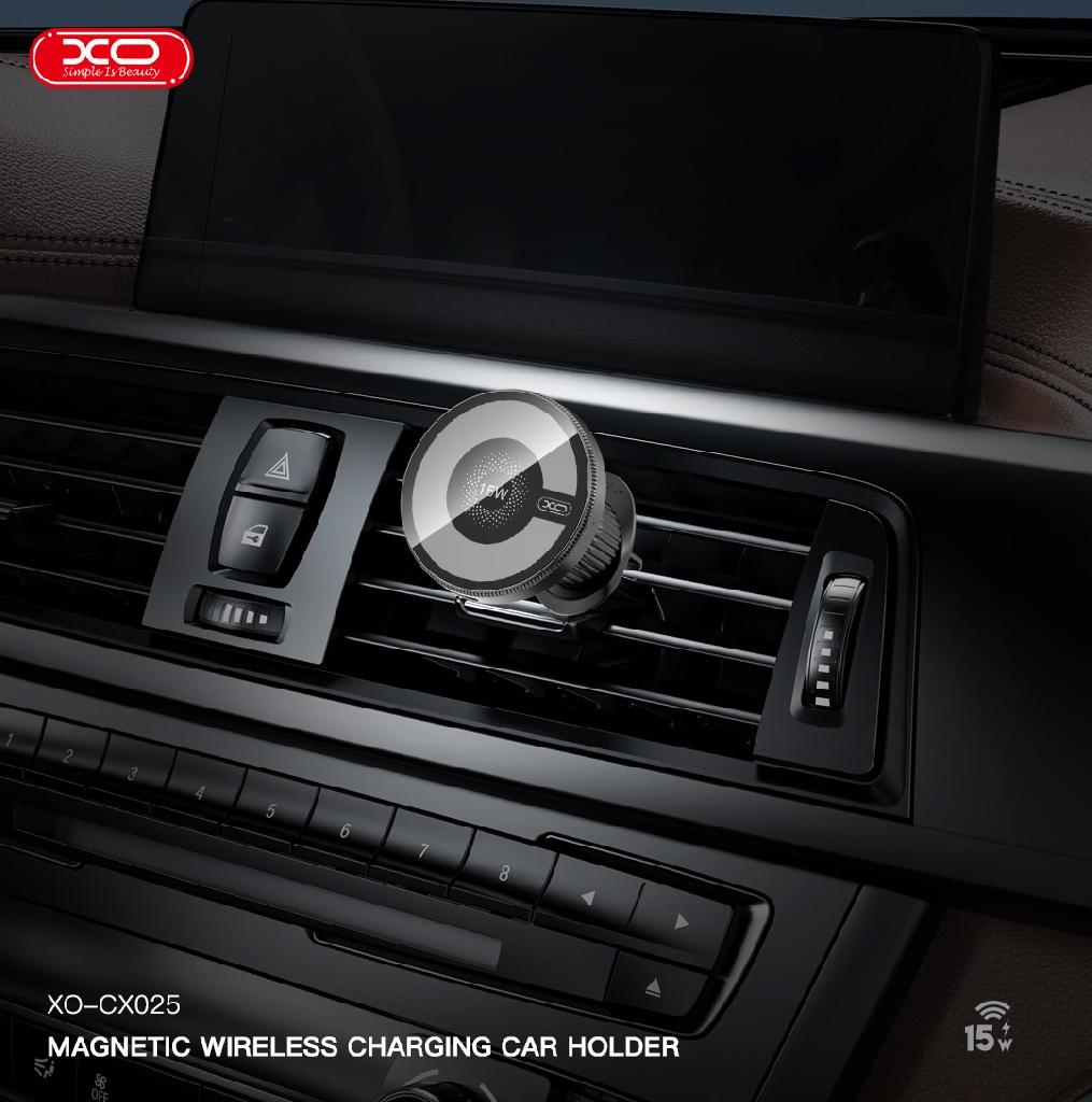 🚗🧲 Încărcător auto wireless magnetic 15W Qi Fast XO CX025 – montare pe grila de ventilație