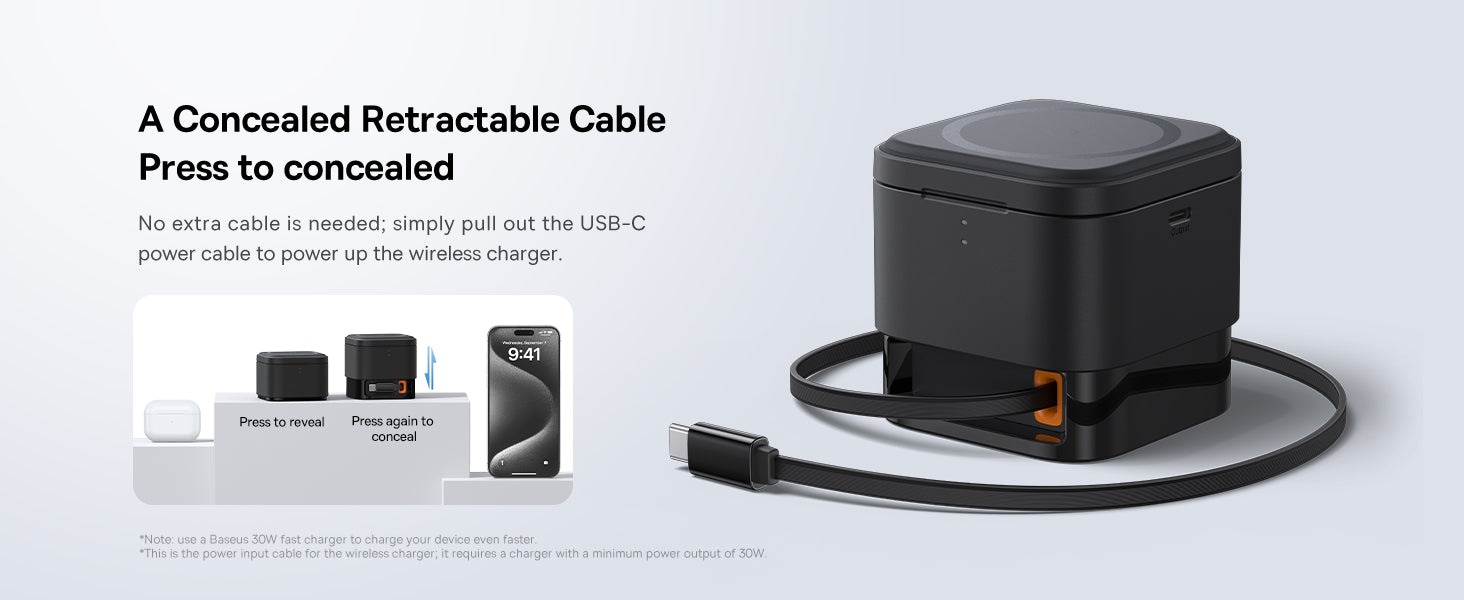 Incarcator retea 2in1, incarcare wireless Qi, MagSafe, cablu integrat TypeC, MagPro BASEUS