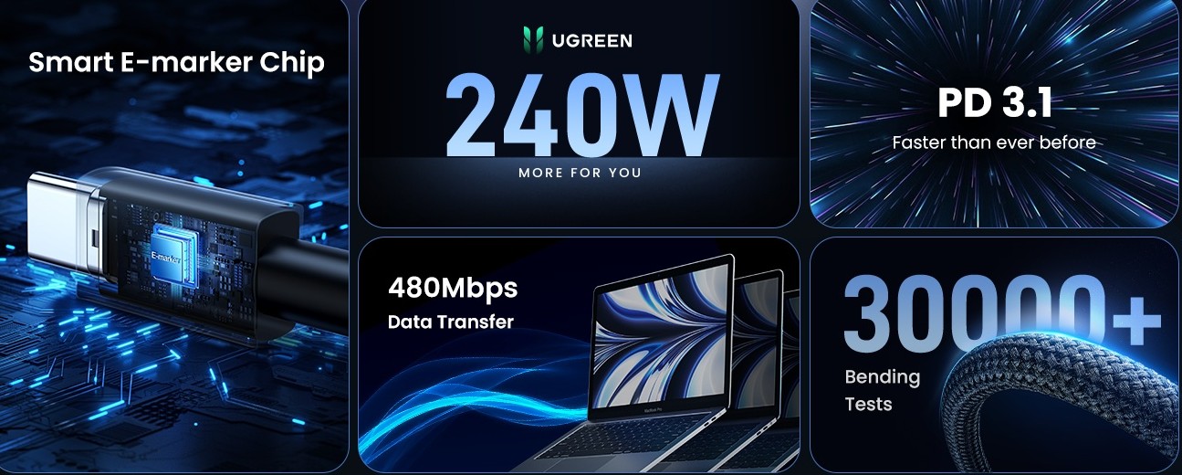 🛒 Alege cablul UGREEN de 240W pentru cea mai rapidă experiență de încărcare disponibilă și o durabilitate de neegalat!