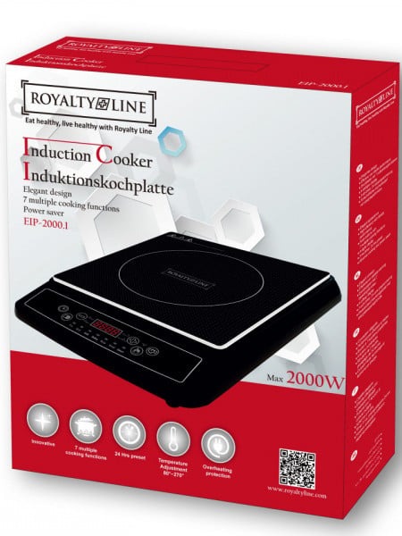 Plita cu inducție Royalty Line cu o putere de 2000W și o plajă de temperatură între 80°C și 270°C, denumită RL-EIP2000, pare a fi un aparat eficient și versatil pentru gătitul cu inducție.