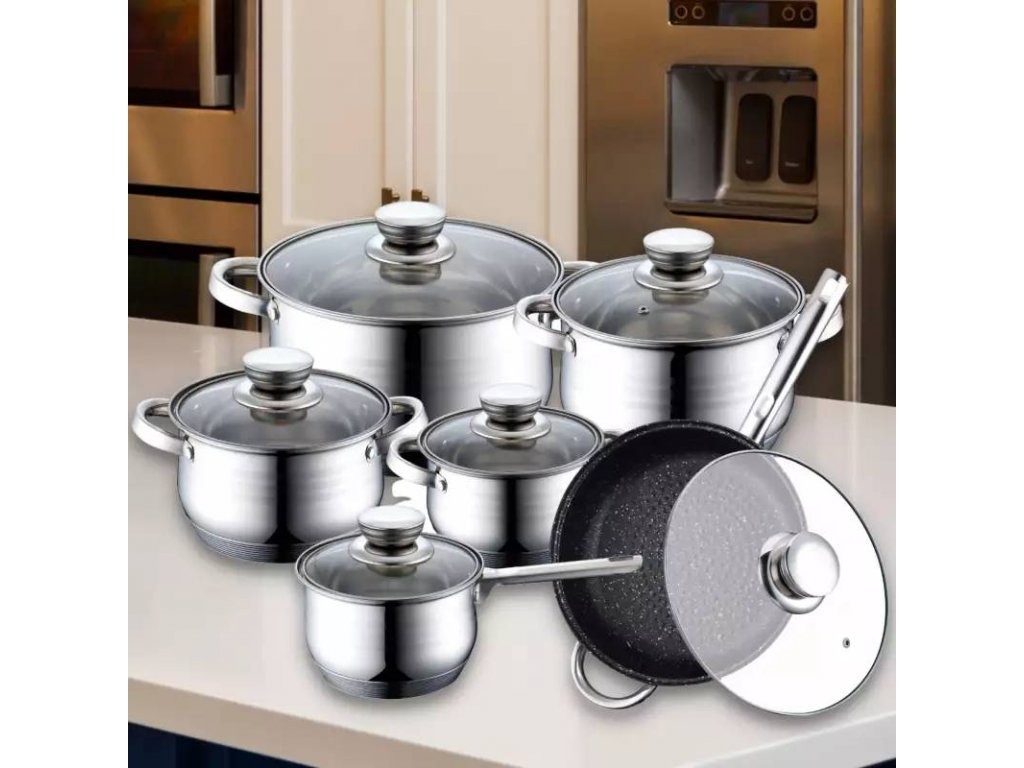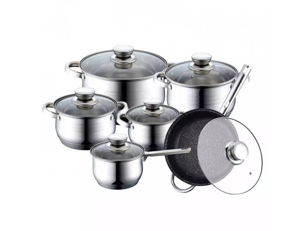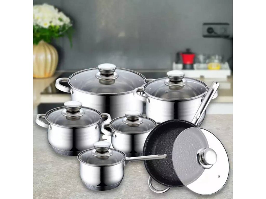 Set de 12 bucăți de oale Royalty Line RL-1231M, în care vei găsi tot ce ai nevoie pentru gătit, și anume 5 oale , 6 capace și o tigaie potrivită pentru orice suprafata de gatit.