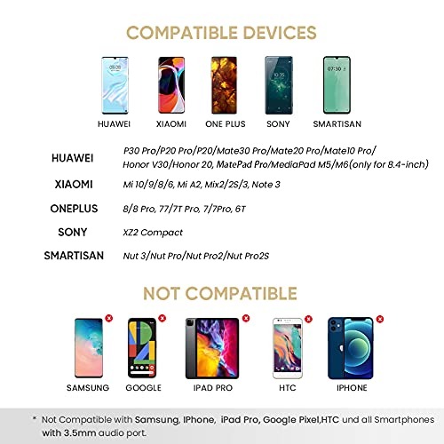 🎯 Compatibilitate extinsă – Conceput pentru telefoane și tablete USB-C fără mufă audio, precum Huawei, OnePlus, Xiaomi, Oppo, Honor sau altele.