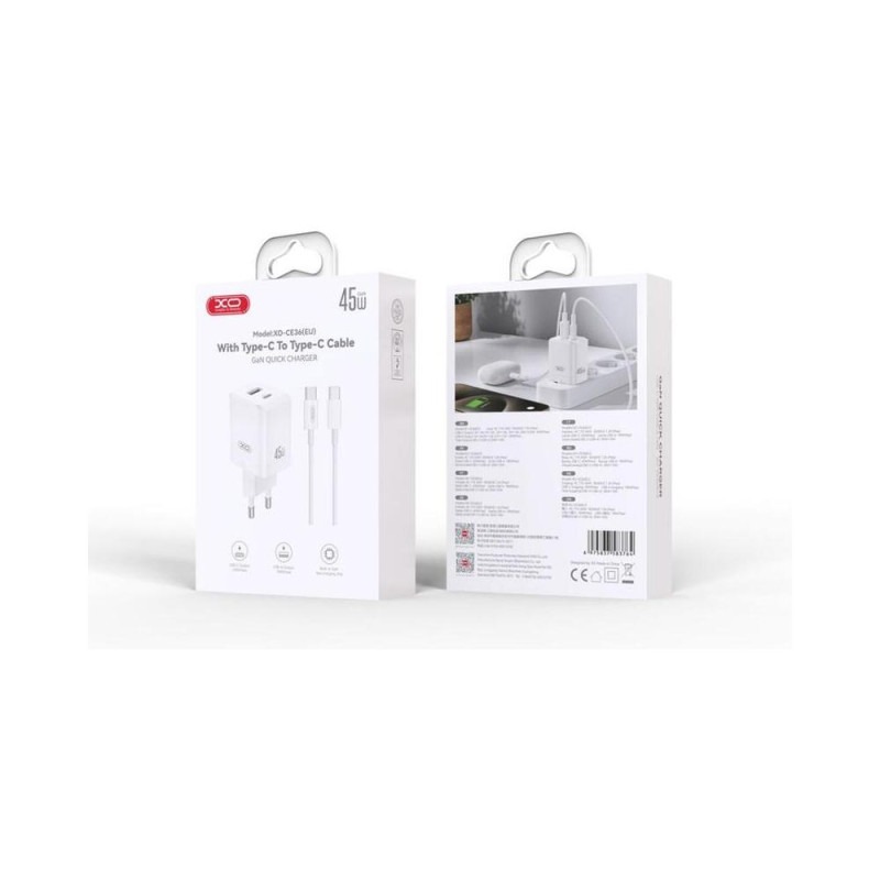 ⚡ Încărcător rețea XO CE36 cu cablu Type-C, 45W GaN, 1xUSB-A + 1xType-C