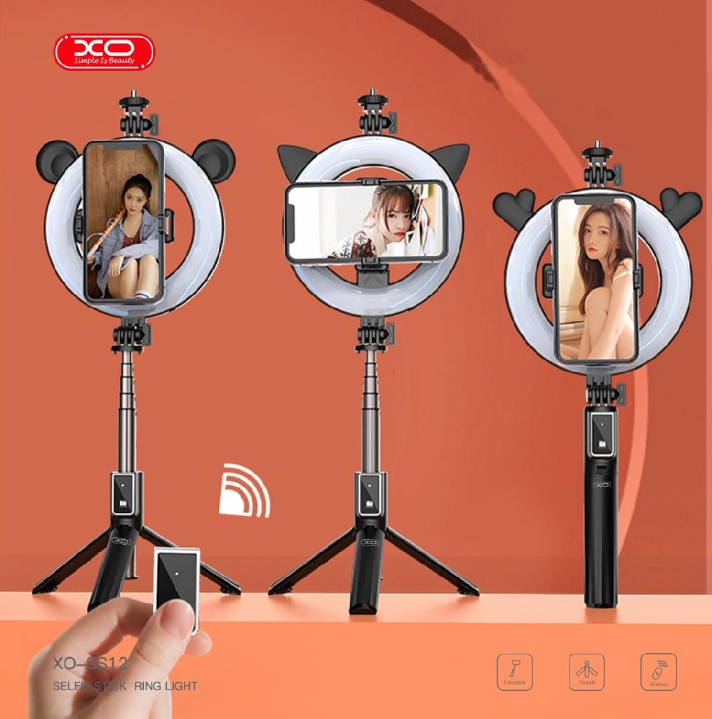 Selfie stick, trepied, suport de telefon cu lampa inelara LED XO SS12