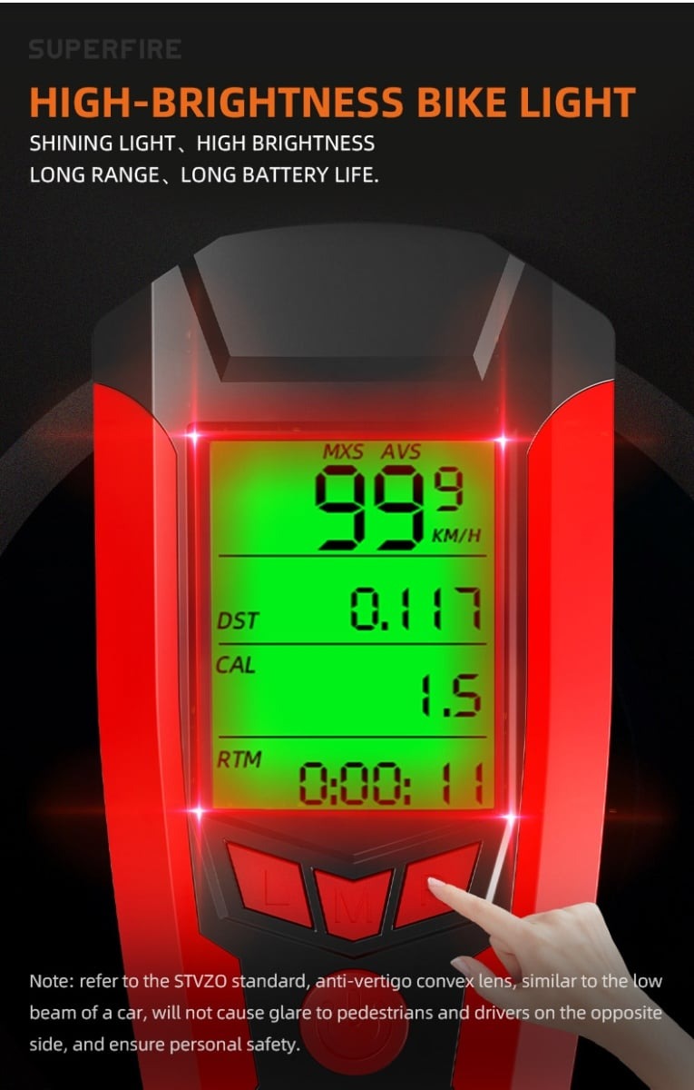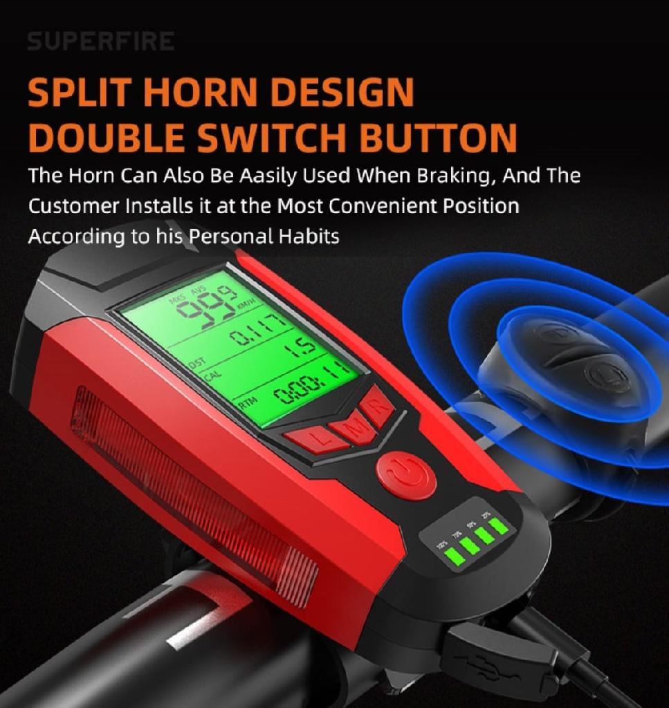 🚴♂️ Lanternă bicicletă 4-în-1 cu afișaj multifuncțional și claxon SUPERFIRE BM01 – Siguranță și control la fiecare pedalare