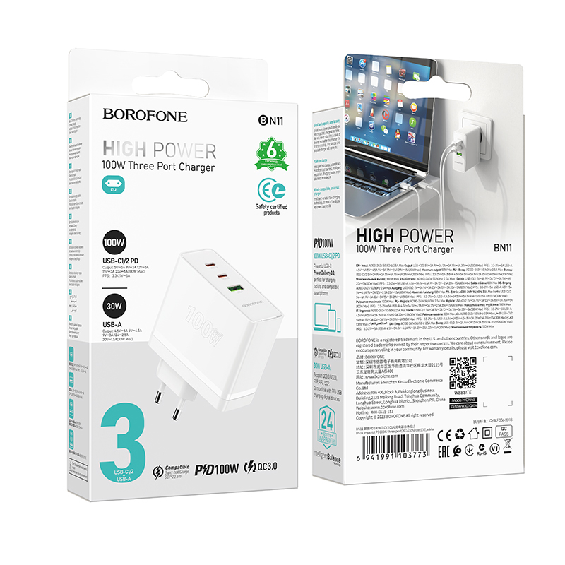 Încărcătorul de rețea BOROFONE BN11 este soluția ideală pentru alimentarea rapidă și sigură a tuturor dispozitivelor tale – de la smartphone-uri și tablete, până la laptopuri și gadgeturi de mare putere.