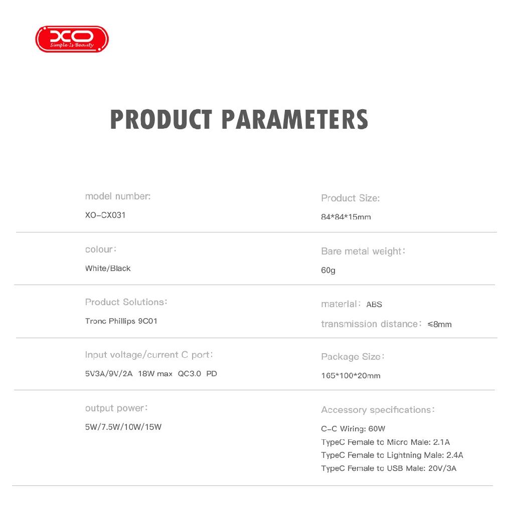 Încărcătorul wireless XO CX031 este soluția modernă și eficientă pentru încărcarea rapidă a smartphone-urilor compatibile Qi și MagSafe.