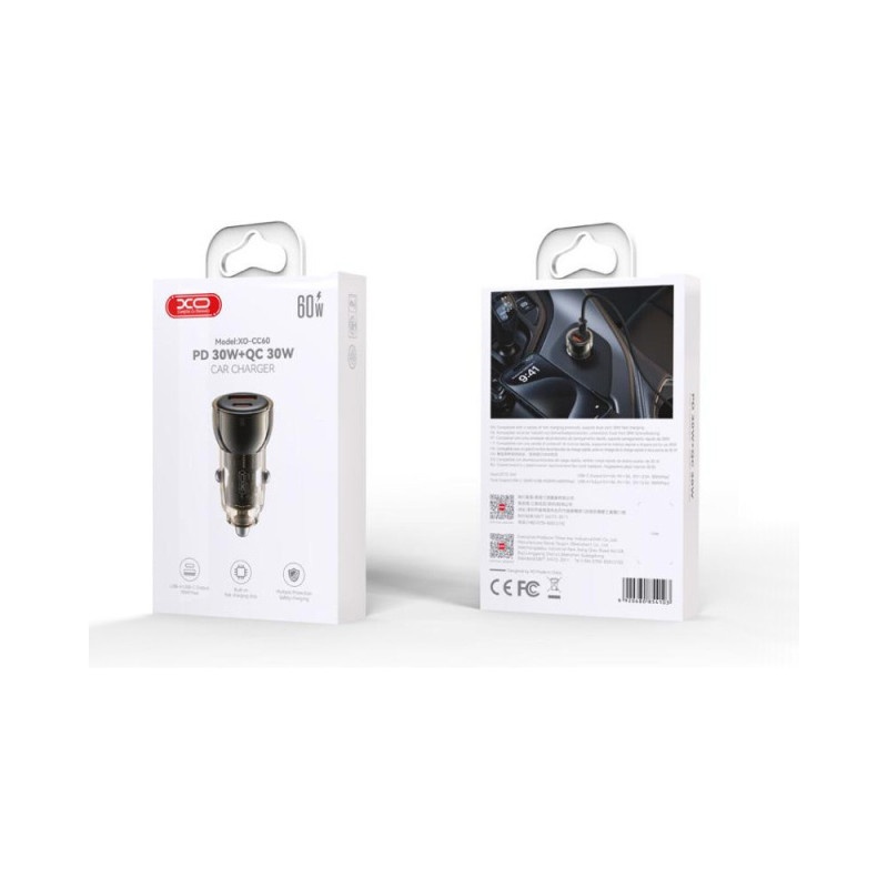 Incarcator auto, 60W, 3A, 1xUSB-A si 1xTypeC XO CC60
