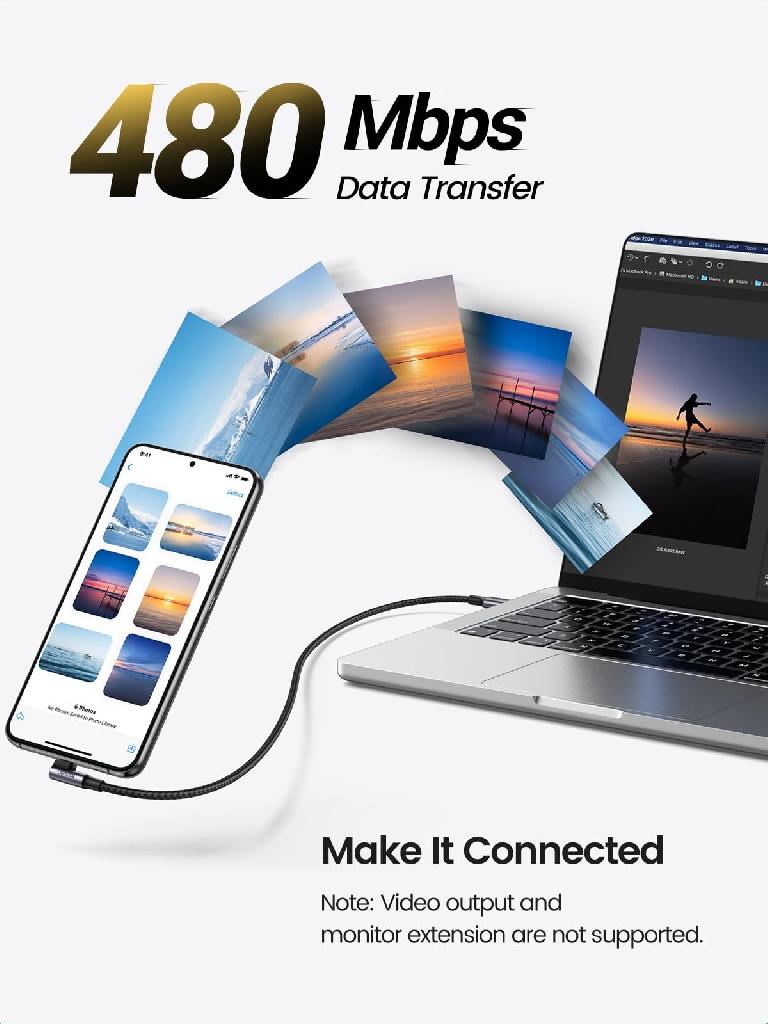 Permite sincronizarea datelor la viteze de până la 480 Mbps, ideal pentru transferul fotografiilor și documentelor între dispozitive.